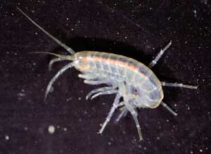 Amphipoda means "different-footed", and refers to the different forms of appendages these crustaceans have. Their bodies are flattened laterally (sideways) and the order includes the shrimps.