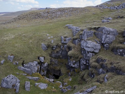 On common land, the cave is situated 45 metres North East of the summit of Carreg yr Ogof - a hole in the foot of a rock outcrop North of the Trig. point.