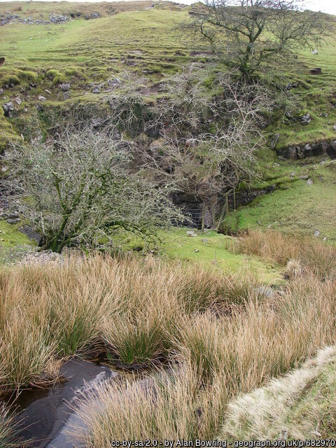 The sink is in a large doline in a dry valley some 2400 metres North East of the Llygad Llwchwr resurgence and is best approached from the minor road from Ammanford to Capel Gwynfe and walking due East for about 500 metres across the open moor from the point SN 6822 1905 on the road.
