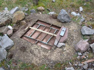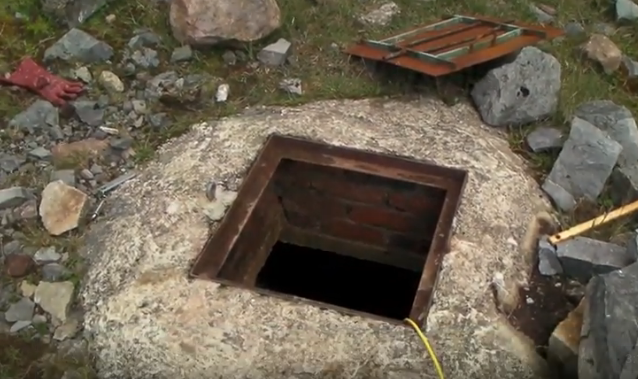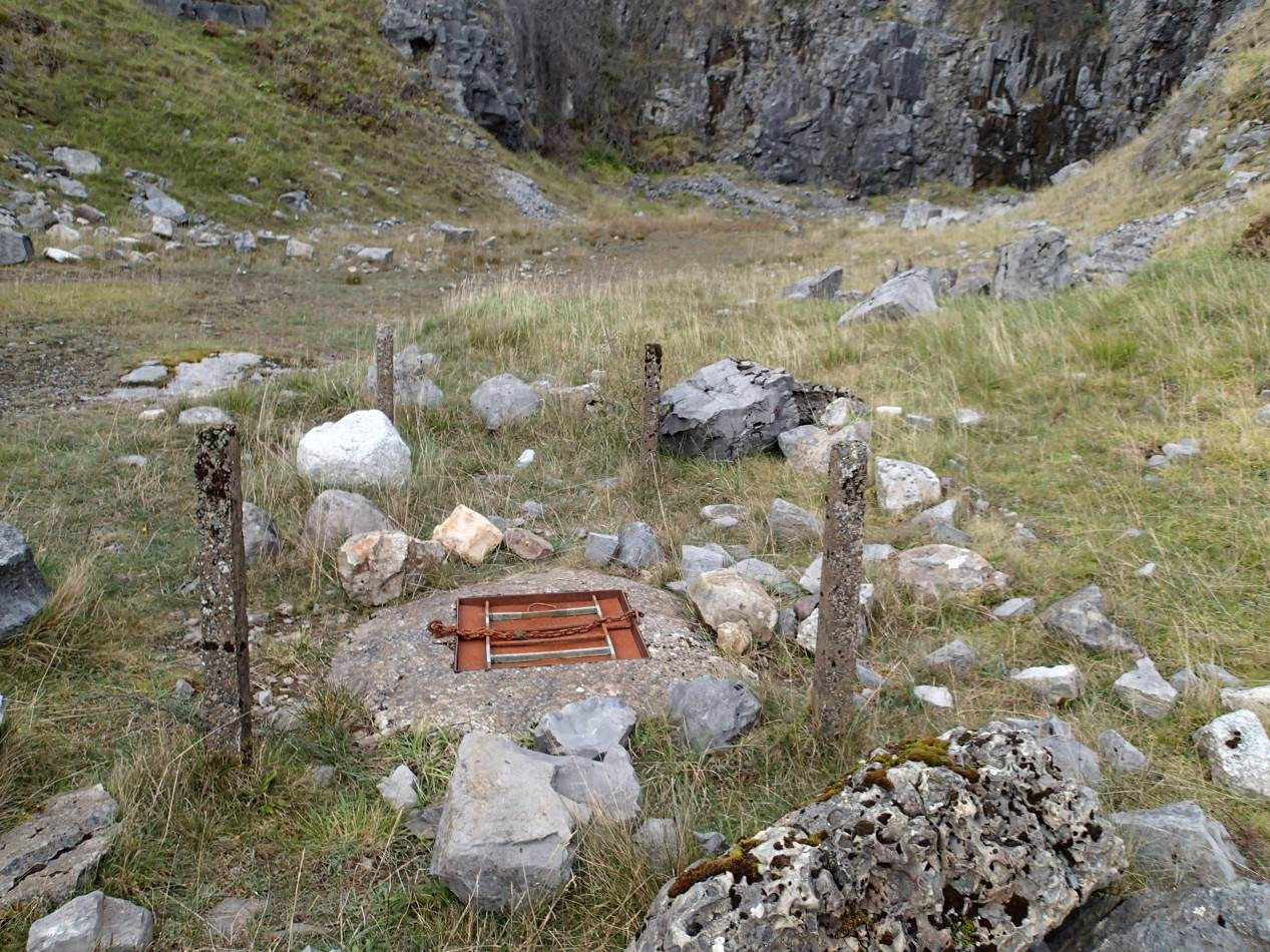The entrance is in the quarry floor and is capped & gated.