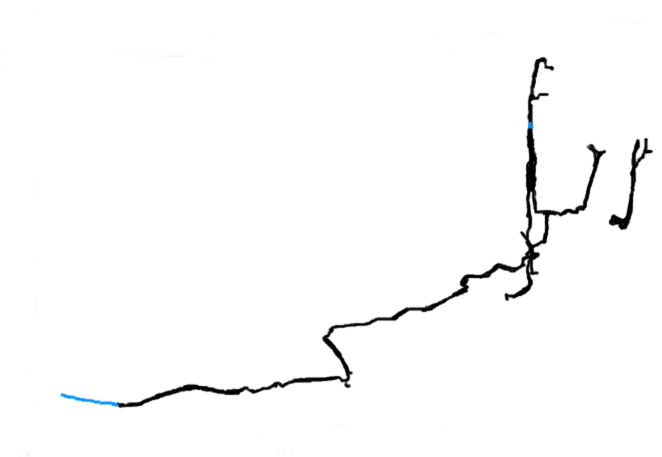 First discovered in 1938. Rediscovered and extended by SWCC in 1990 and 1994. DudleyCC reentered the upstream Sand Sump extensions in 2015.
