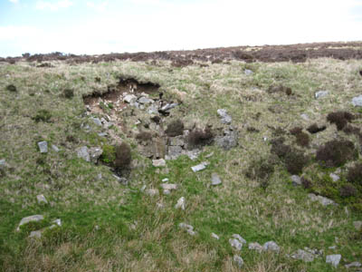 There is a small entrance on the East side of a long oval doline. The entrance is very difficult to find, being on open moorland. Best approached from Blaen Onneu Quarry. Head roughly West towards the Trig. Point and then from there turn slightly South of West for about 800 metres to the head of a large dry valley. There is a small rock outcrop and cairn on this side of the valley with two oblong shaped shakeholes nearby. The larger of the shakeholes contains the entrance.
