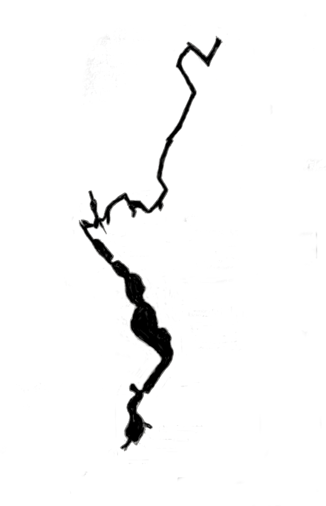 A crawl leads to the gate. Crawls lead on to a chamber and then on to a point close to Ogof y Daren Cilau.
