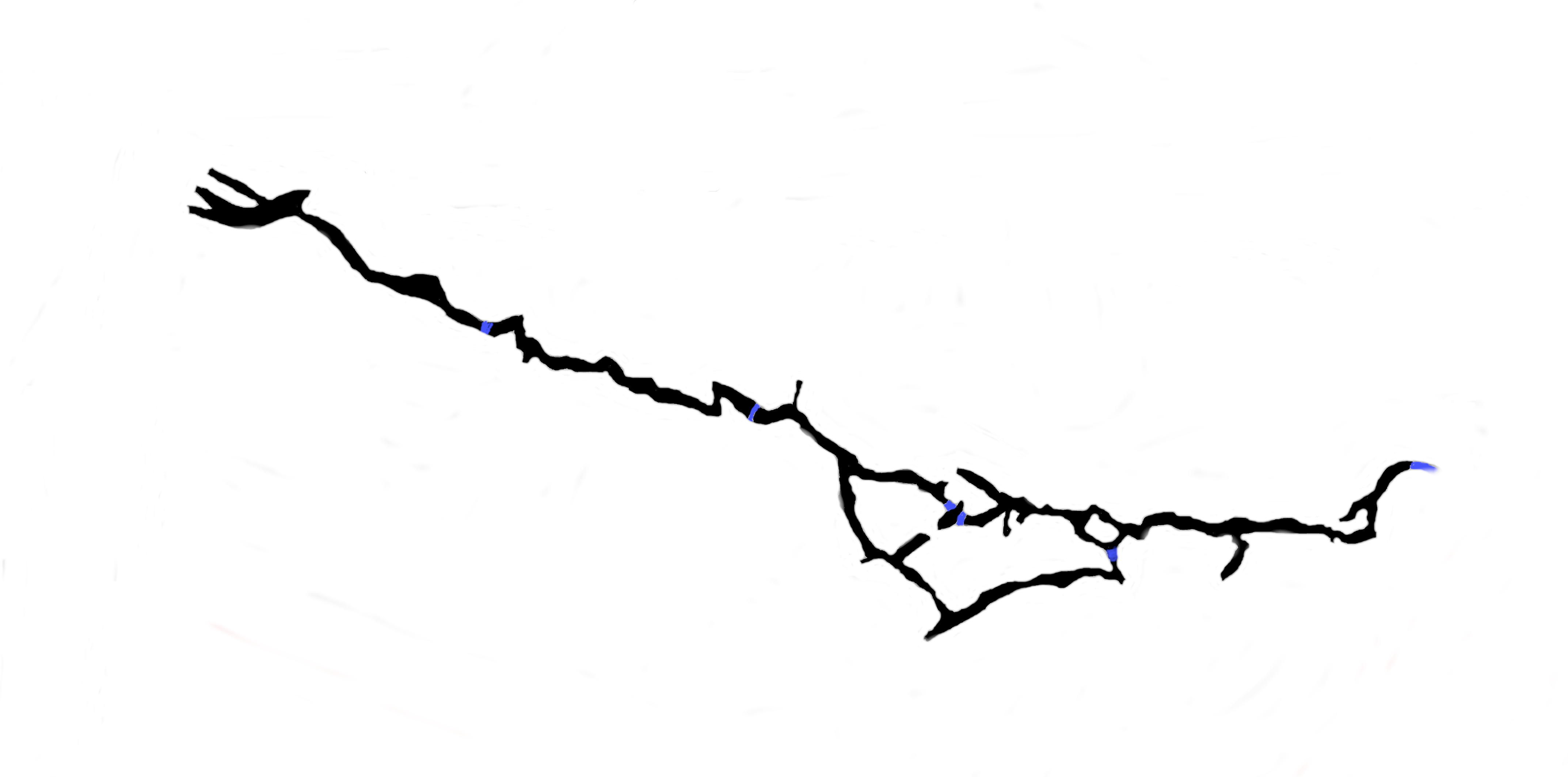 A stream flows out of the entrance which leads to a small chamber and then becomes an aquatic exercise via a series of ducks (and an optional sump) to sump in a very narrow rift.
