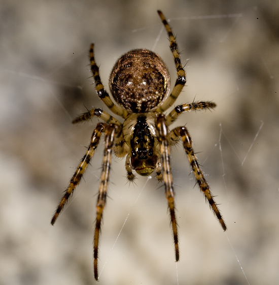 Meta menardi is a large, dark brown, orbweb spinning troglophilic cave spider that is well known to cavers. Meta spiders need space to create these webs, but they are not spun across the cave passage like normal orb spiders unless there is nothing else to anchor the web to. The threads of the web of Meta menardi are not sticky and appear to serve as a supportive platform for the spider rather than directly serving to trap prey, instead the radial threads act as a series of trip lines to detect the presence of potential prey on the cave walls and ceiling. They feed on woodlice, millipedes, slugs, earthworms, flies (Culex pipiens in particular) and possibly smaller Meta menardi (although there is no evidence of this). It can gorge itself and may store food by trussing it in the web.